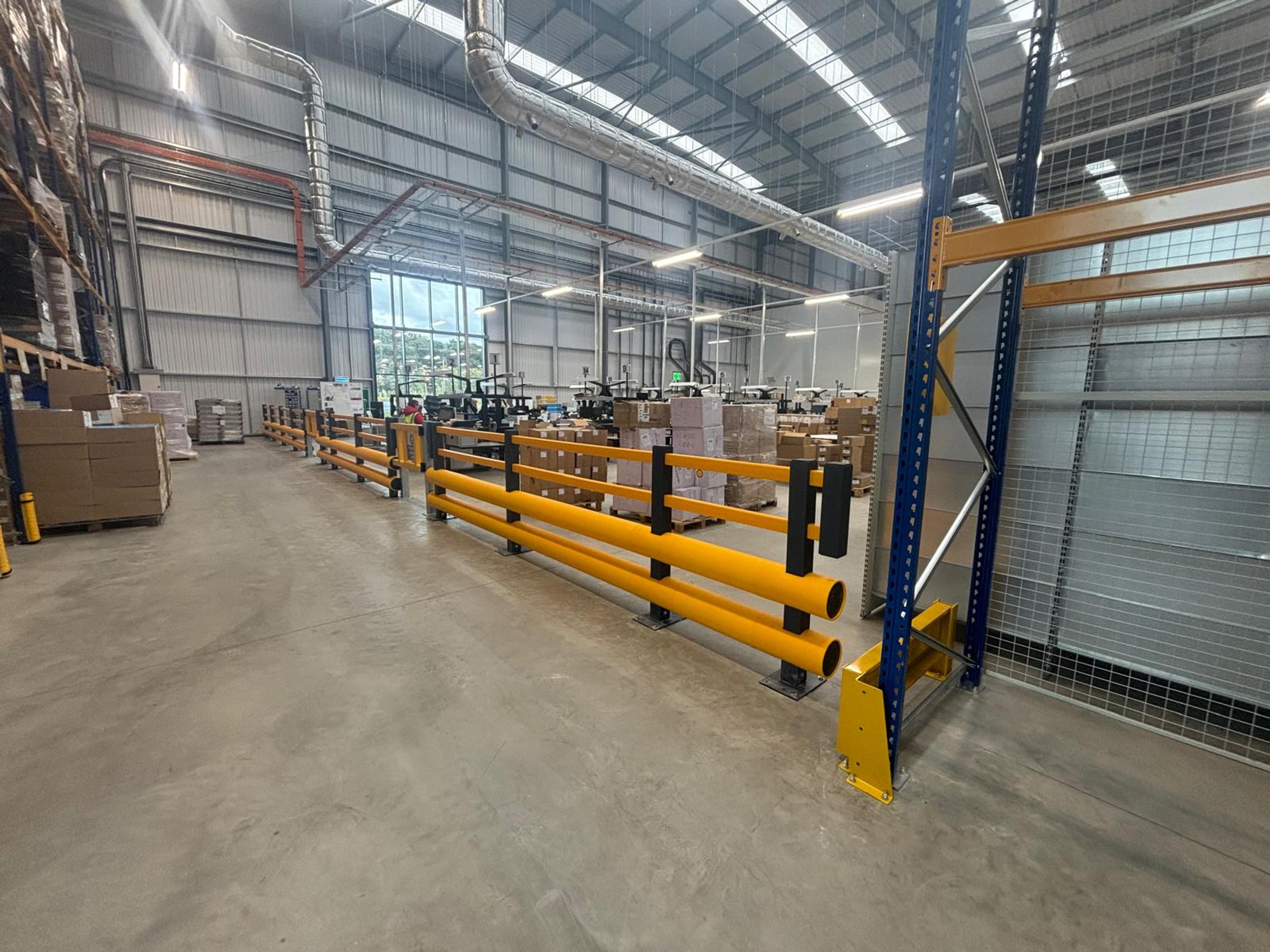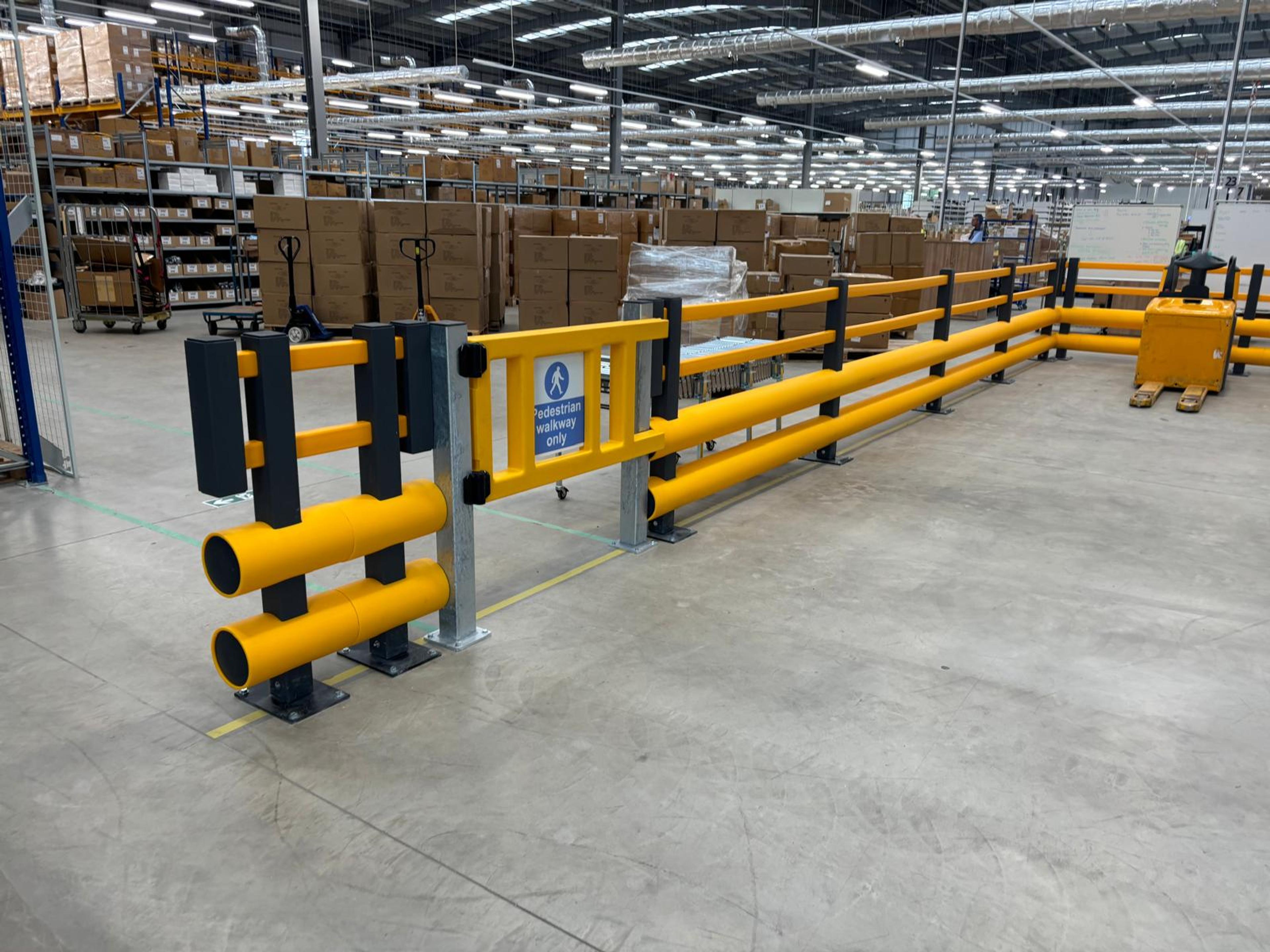 The installation of mesh partitioning & safety barriers being implemented into the clients new warehouse kept the members of staff safe from the on site fork lift trucks and made the designated walking route easily accessible to keep all members of staff safe.
