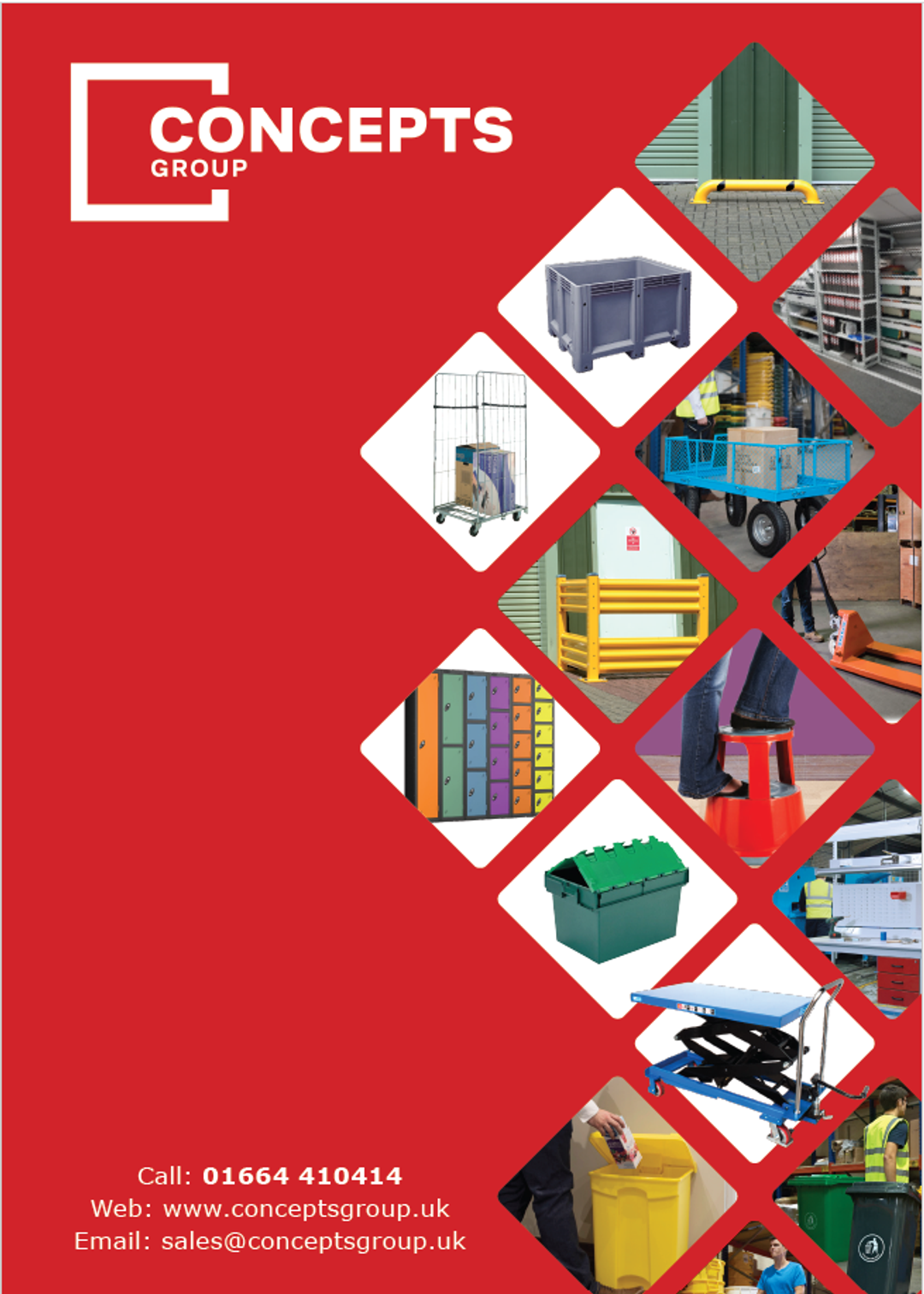 Concepts Group have released our new 2025 essential industrial equipment catalogue. Within our catalogue, you can find the following products: Racking, Shelving & Sheet / Bar Racks Lockers, Cupboard & Cloakroom Small Parts Storage & Containers Storage, Security Cages & Hazardous Safety, Security, PPE, Matting & Flooring Signs, Labels & Notices / Whiteboards Barriers, Traffic Management & Mirrors Cycle Storage & Smoking Shelters Workbenches & Drawer Cabinets Tool Storage & Trolleys Drum, Cylinder & Spill Control Pallet Trucks, Stackers, Lift Tables & Equipment Sack Trucks Platform & Shelf Trolleys Distribution Trucks & Roll Containers Turntable, General Purpose & Ackerman Trucks Container Trucks & Trolleys Wheels, Castors & Conveyors Kick, Handy & Low Level Steps Aluminium & Glass Fibre Steps / Ladders Mobile, Safety, Warehouse Steps & Platforms First Aid, Hygiene & Janitorial Equipment Waste Management Winter Management Office Desks, Seating & Canteen Furniture Mailroom, Packaging & Retail Equipment Please get in touch with us for a link to the catalogue or a hard copy.