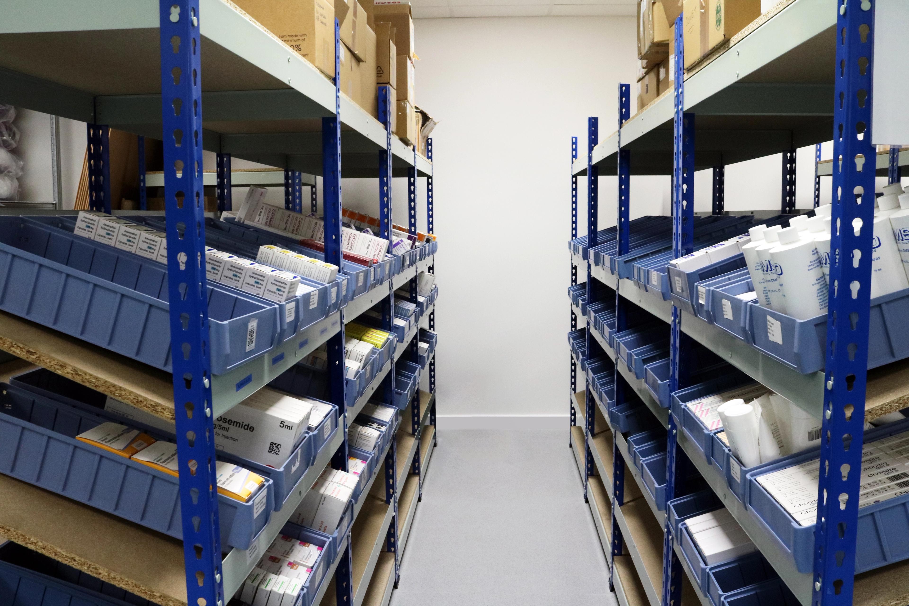 Following the successful completion of a veterinary fit-out, Storage Concepts were commissioned to design and install a new controlled drugs area on the existing mezzanine level. As part of the preparation for the pharmacy area, the existing mezzanine was fully fire-rated, including a suspended ceiling, column casings, fascia, and the installation of a new 60-minute fire-rated double door.