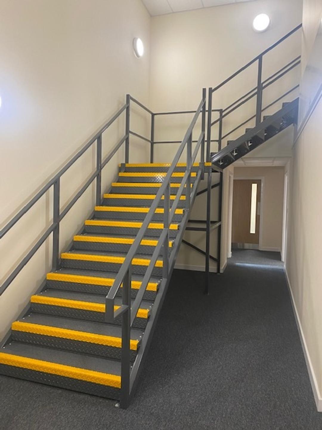 The installation of a mezzanine floor allowed utilisation of the ceiling height within the warehouse to design the office space and keep the storage space on the ground floor for ease of access. Once this had been completed, we were unable to work with our various teams of installers to hit the open area and carry out the remaining installation works to achieve the clients end goal move in date.