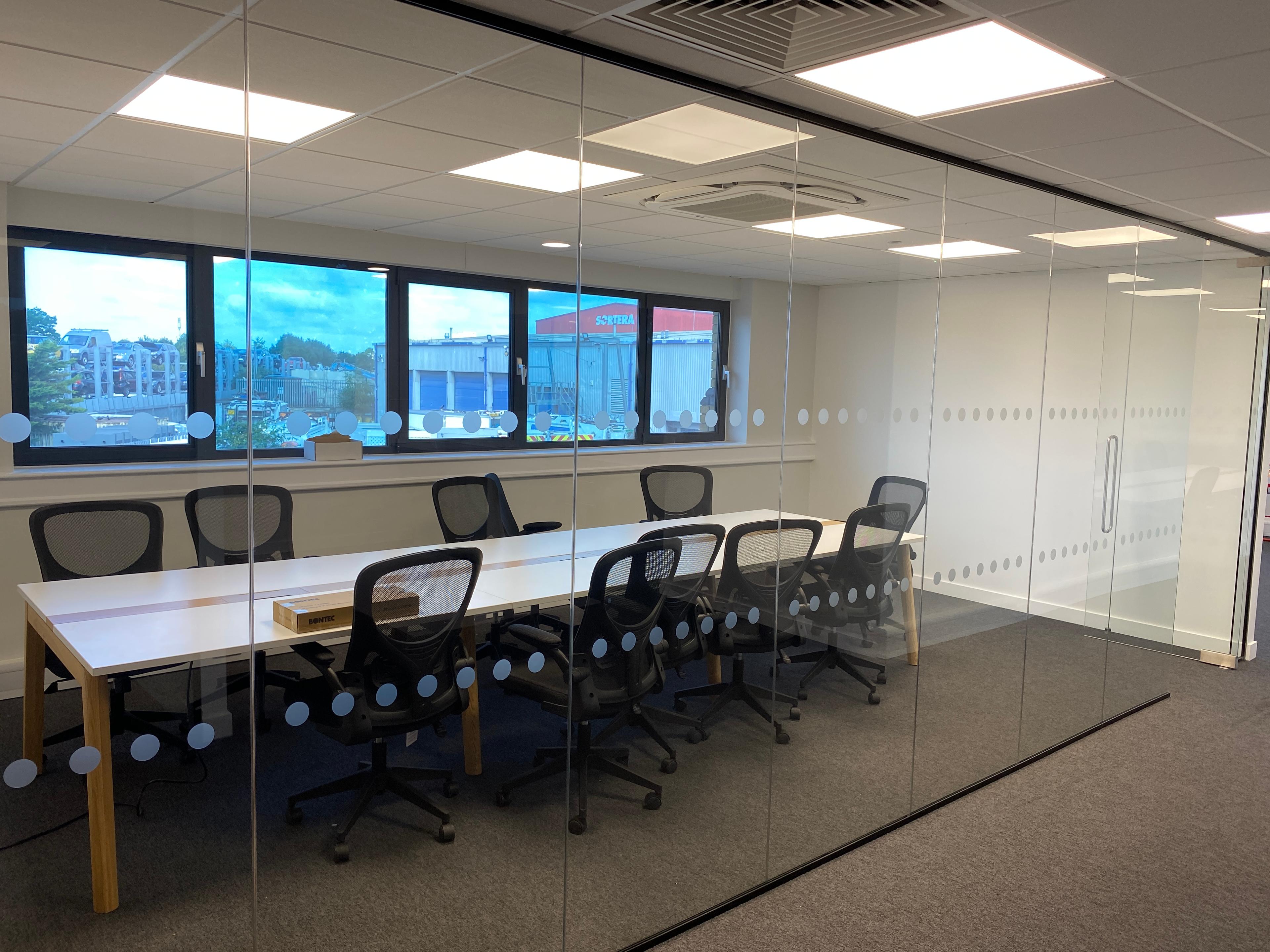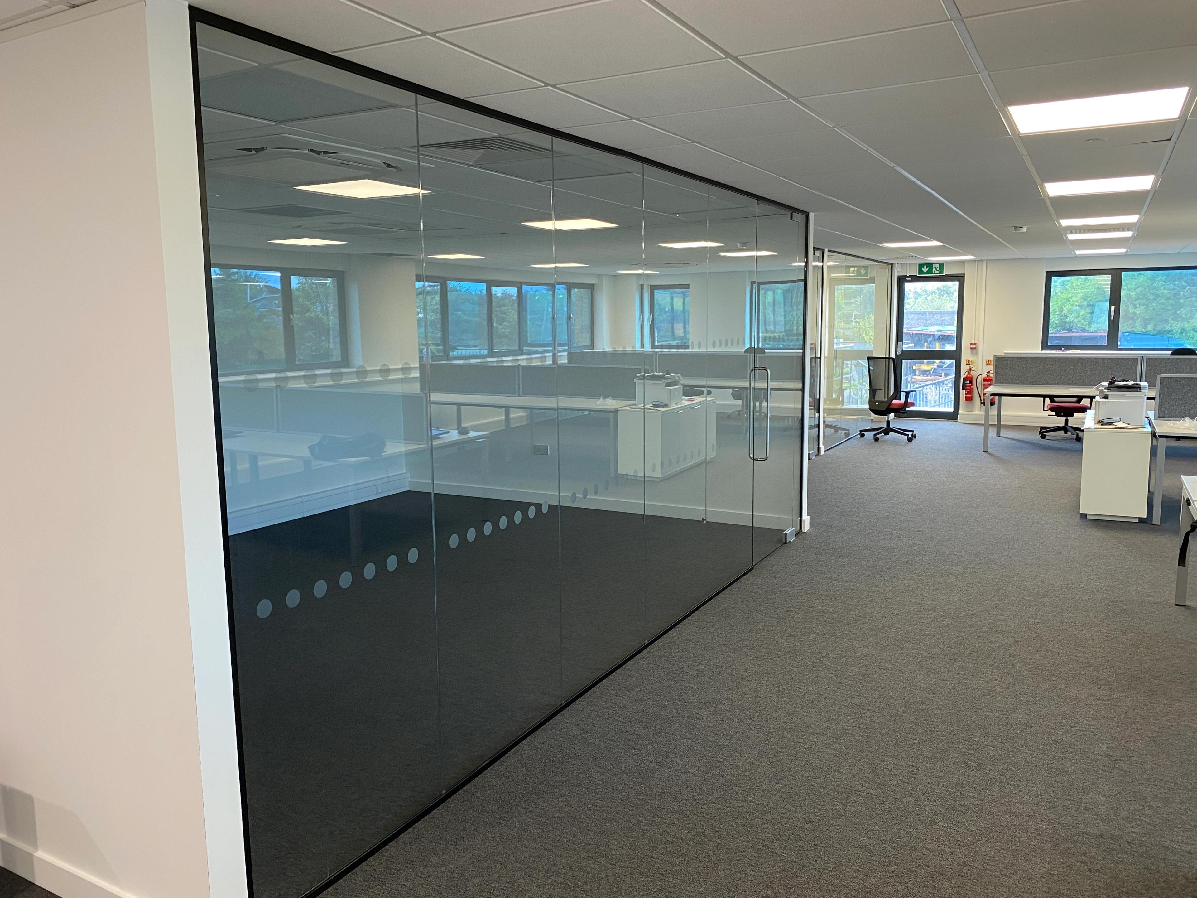 We also separated out the existing open plan first floor office space using a mix of stud and track partitioning and frameless glass partitioning forming modern management offices and meeting spaces.