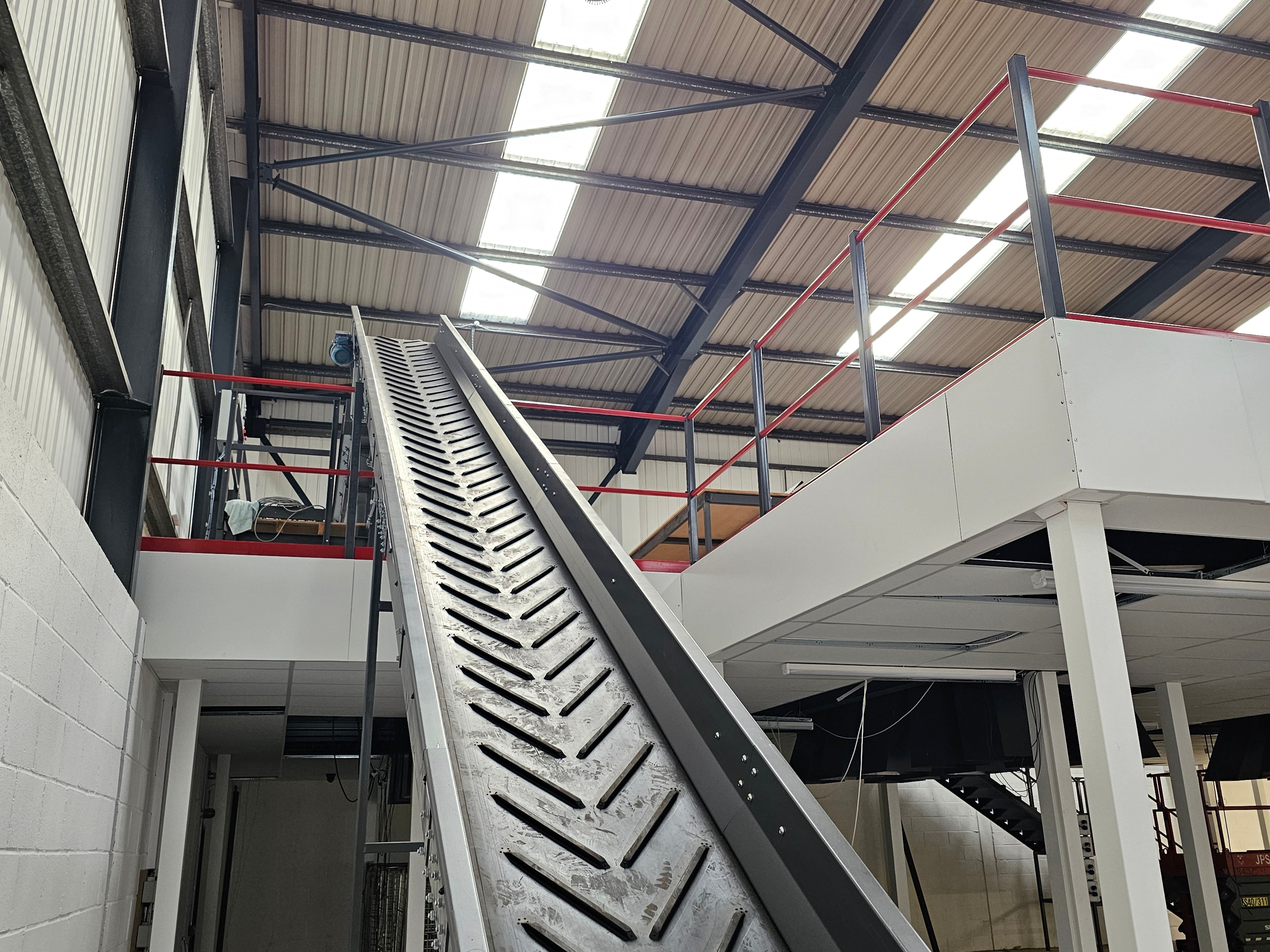 The pallet racking was fitted with anti collapse mesh to provide a protective barrier from personnel above and below the mezzanine from plant operating in the racking.