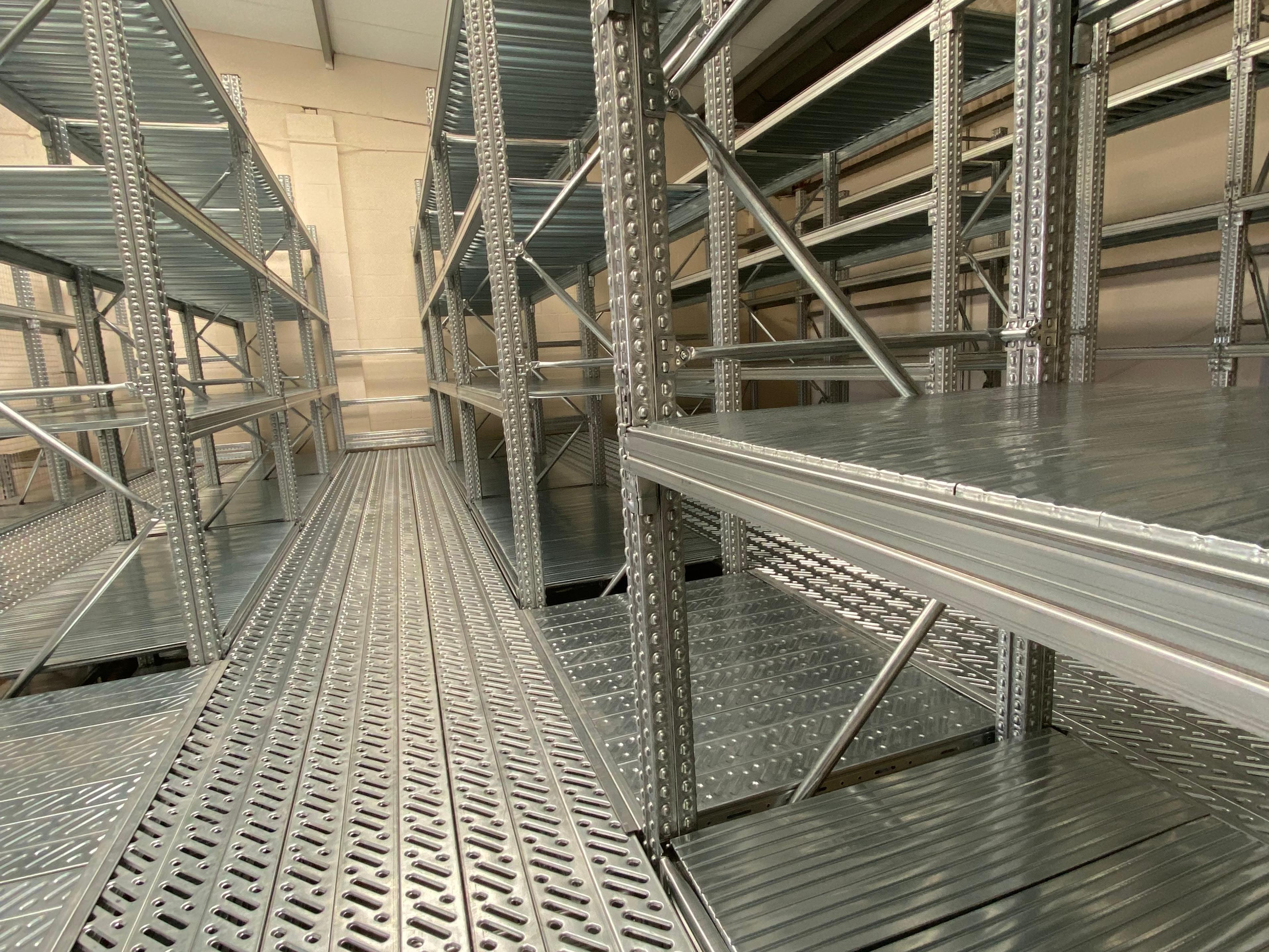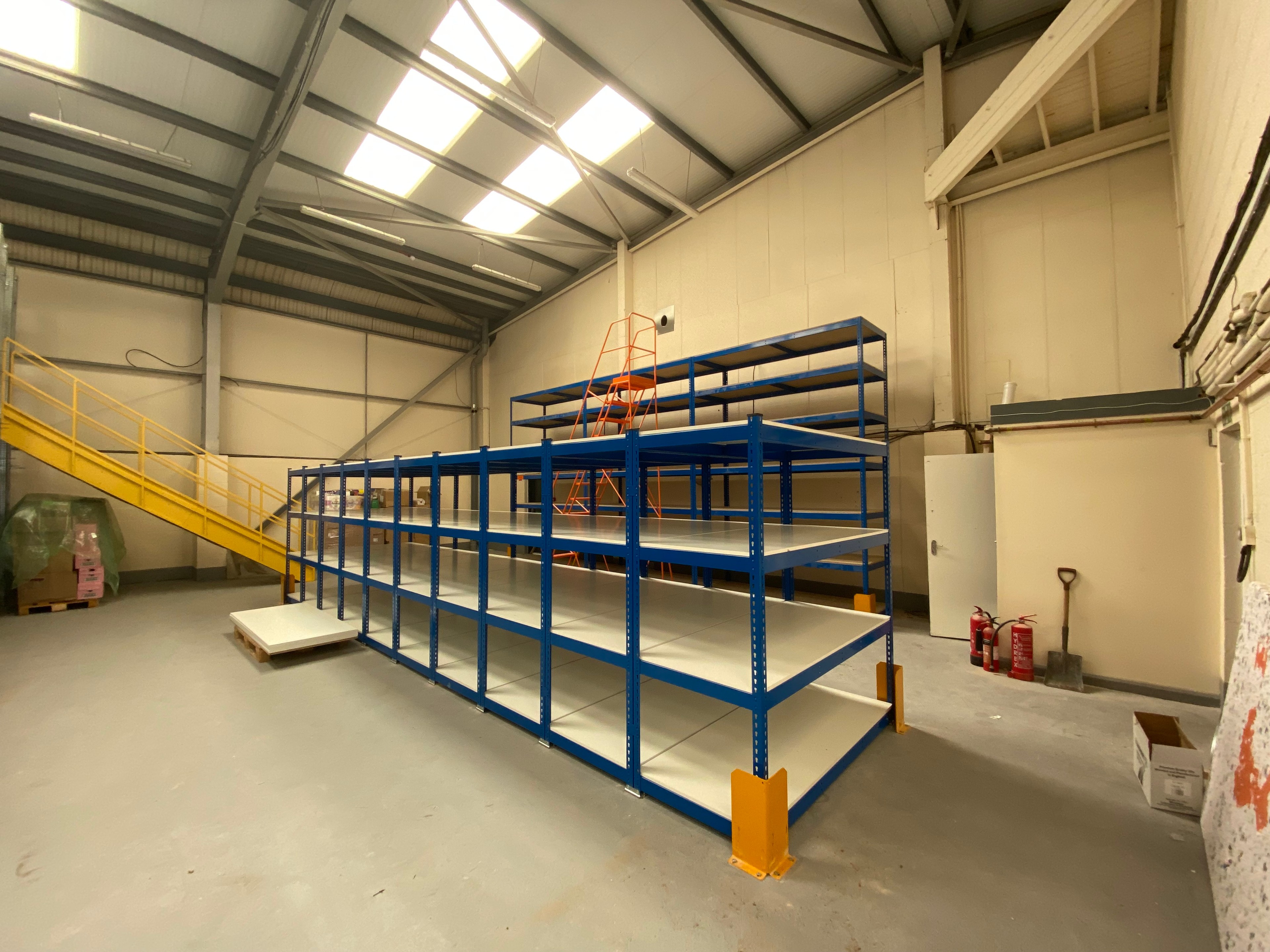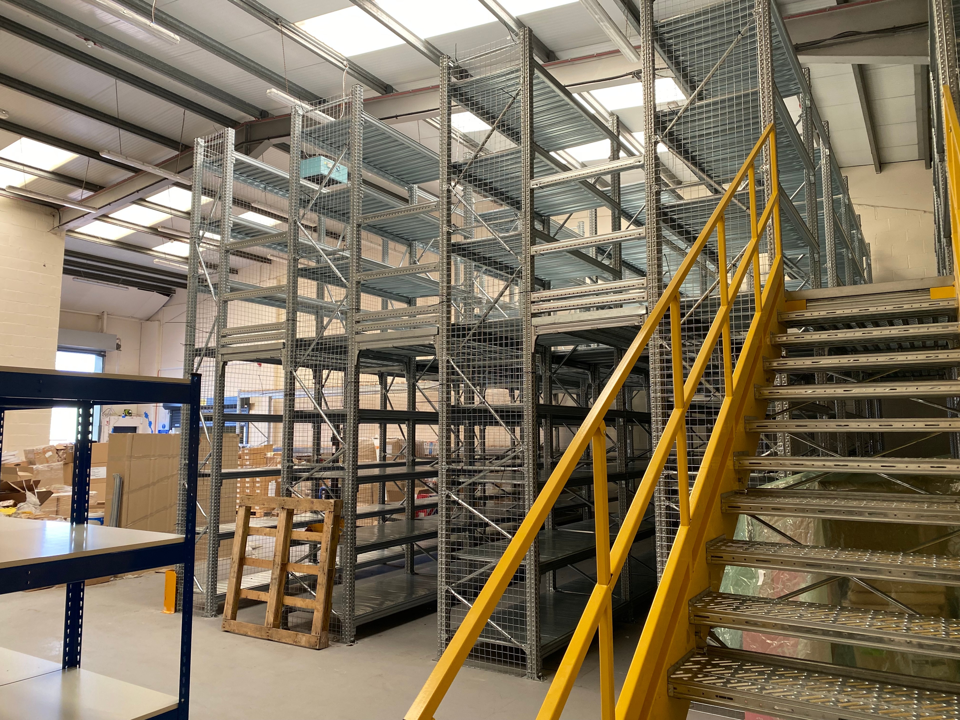 Storage Concepts have recently installed a two tier shelving walkway system including a staircase, rear anti-collapse mesh, safety column guards and rivet rack shelving. The installation was carried out during normal working hours for a new client in Nottingham.